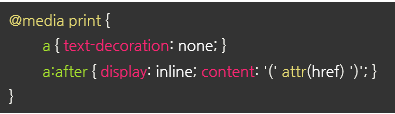 웹 페이지를 인쇄할 경우에는 앵커 요소가 가리키는 url을 문서에 같이 출력해주는게 내용을 이해하는데 훨씬 좋습니다.